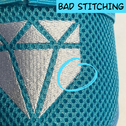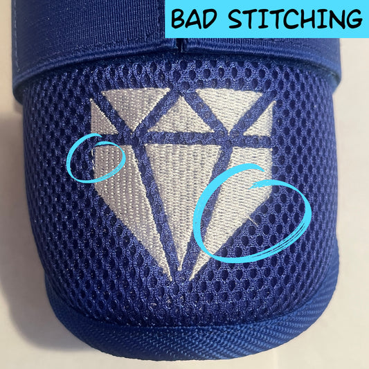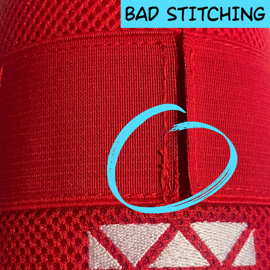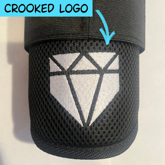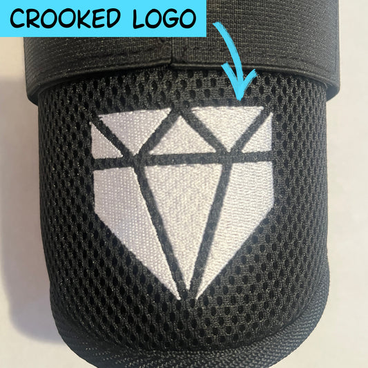 Most of these items have minor cosmetic defects like offset/crooked logos, embroidery with loose or extra threads, excessive stitching, or colors that are slightly off. A few of these items may have minor defects related to size like slight warping on the protective shell which makes the fit a little less snug than intended.
