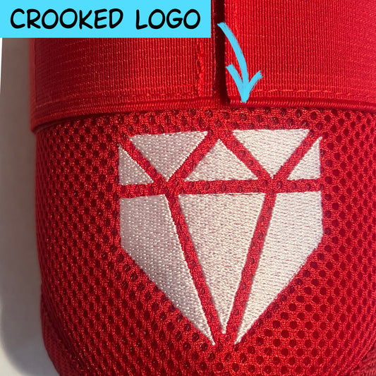MISFIT: Red Elbow Guard - Bad Strap Stitching, Crooked Logo