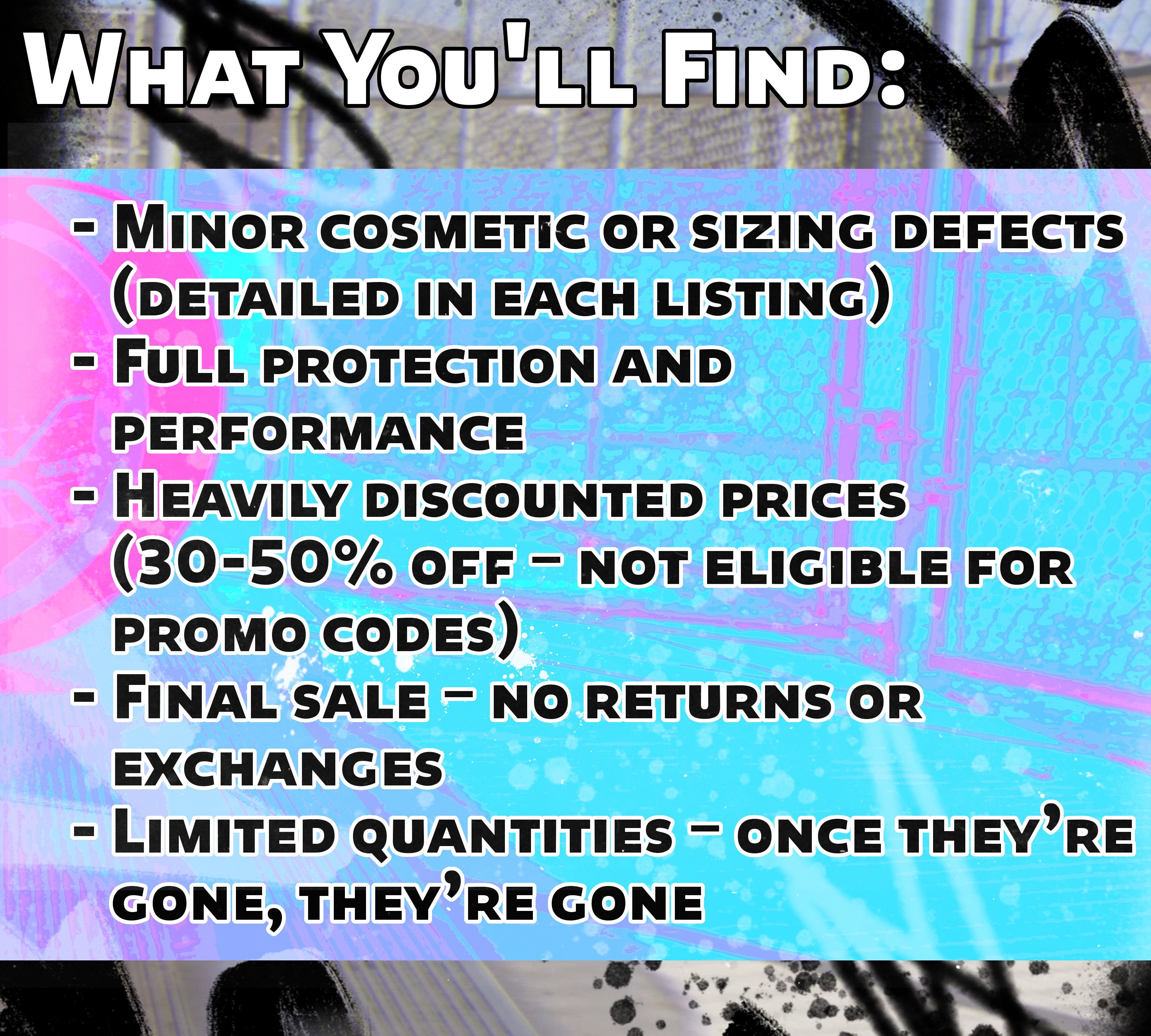 While we always strive to make the highest quality products, mistakes do happen from time to time. We will periodically update this page with Misfit Gear items as they add up in our inventory. If there are no items currently listed here, or you don't see anything that interests you, please check back later. If were hoping for discounted gear right now, you can subscribe to our mailing list for access to our best discount codes.