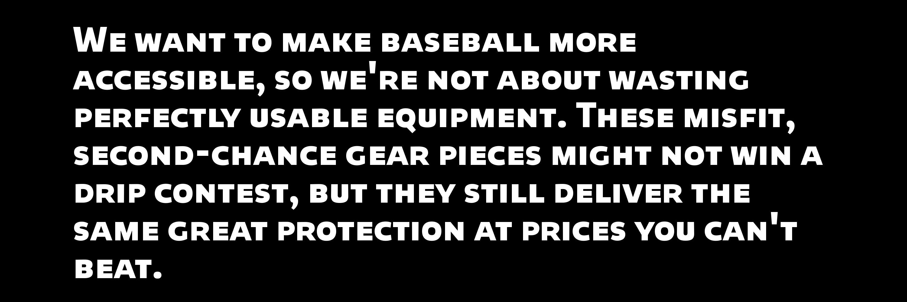 Throwing it out would be wasteful, and that's not how we play. Every piece of gear in the Misfit Dugout performs exactly as intended. It's just not for sale at full price because we hold ourselves to high standards and we're picky about the little things. We know baseball can be expensive and this is one of the things we do to make the game more accessible and affordable. We're giving usable gear a second shot at game time so that you can stay in the game, too!