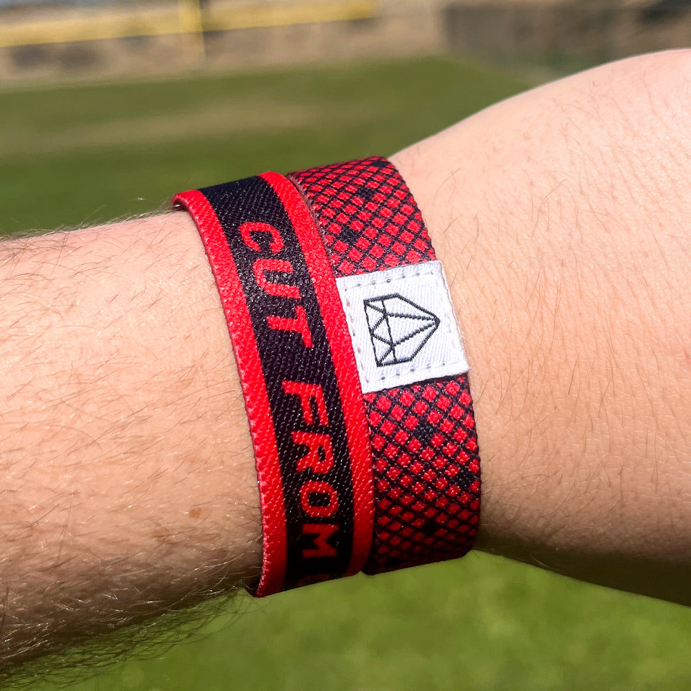 Cut from Courage - Not every Baseball Player has what it takes to be fearless when the stakes are high. It takes a special kind of courage to secure a tournament win as the closing pitcher, or to step up to the plate and hit when you're the last hope. This wristband can remind Baseball athletes that their courage is unmatched so they never back down.
